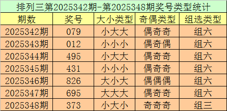 排列三第2025348期回顾:奖号373,奇偶比3:0,大小比1:2,和值13,类型:组三。