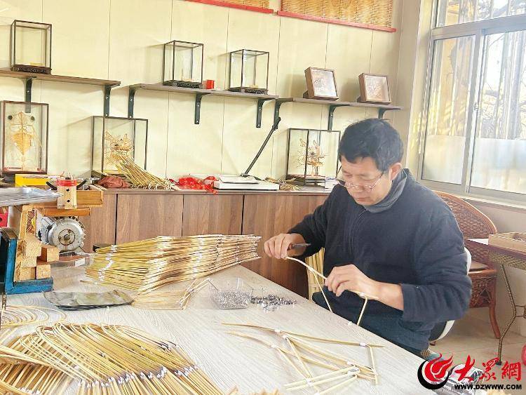 在吉风竹艺风筝工艺品厂,非遗手艺人王旭升正在制作竹艺风筝,旁边产品展柜里,整齐地摆放着龙头、螳螂、金蝉等竹艺风筝摆件,这些产品工艺精湛,连昆虫腿上的倒刺都清晰可见。“这些摆件用榫卯技艺插接,不用任何金属件,很受消费者欢迎。”王旭升介绍,他的作品需经选竹、破篾、扎架等十余道工序,对工艺精度要求极高。
