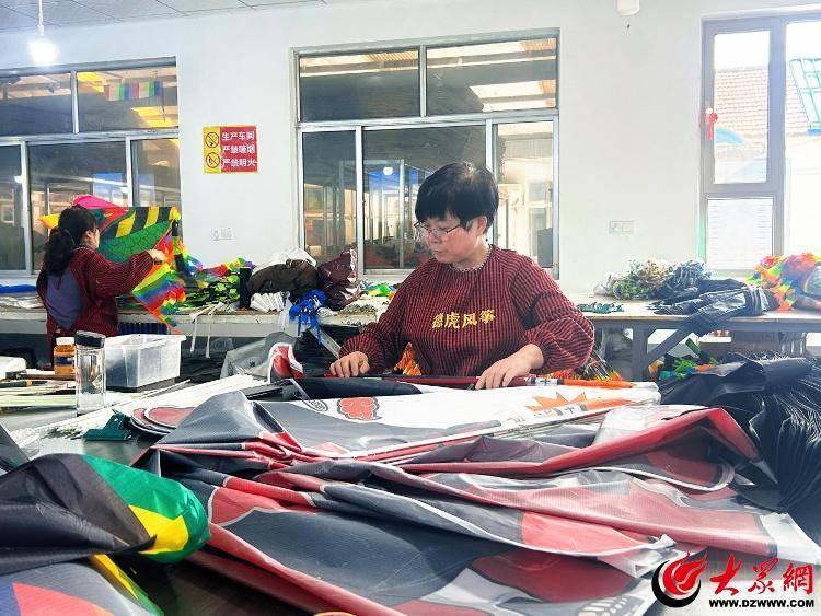 r走进潍坊市坊子工业发展区王家庄子村,随处可见风筝厂家忙碌生产的景象。在潍坊鸿鑫风筝有限公司,缝纫机声、裁剪声此起彼伏,十多名女工正在加紧赶制订单,一只只色彩斑斓、造型各异的风筝将从这里走向全国、飞向世界。
